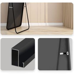 Squared Full Length Mirror, L67in. W27.5in. Floor Mirror with Stand, Large Standing Mirror wooden back, Bedroom Living Room, Aluminum Frame,Champagne $129Phillips Ranch, CA