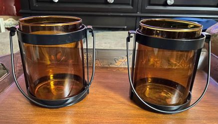 Decorative Black Metal and Amber Glass Candle Holder w/Handles (2x)$10Holiday, FL