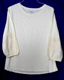 TEE SHIRT ladies size XL pale yellow 3 4 eyelet lace trim sleeve$89Dallas, TX
