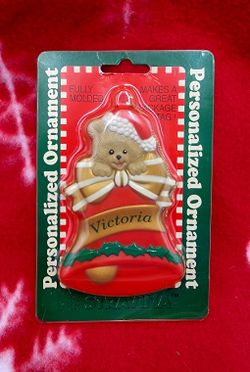 VTG 1998 Stravina Personalized VICTORIA Bell Teddy Bear Christmas Tree Ornament$12Round Rock, TX