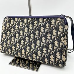 Christian Dior Clutch Bag Trotter Beige Navy Canvas Y2K Vintage $199Boston, MA