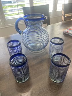Mexican Hand Blown Glass Pitcher Set $25Pico Rivera, CA
