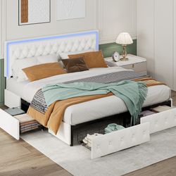 King Size Athanasius Modern LED Platform Bed, PU Upholstered Bed with Storage Drawers, RGB Lighting & Music Sync, Adjustable Headboard, No Box Spring $320Rancho Cucamonga, CA