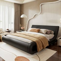 Full Size Bed Frame with Curved Adjustable Headboard, Faux Leather Upholstered Platform Bed, Black$180Rancho Cucamonga, CA