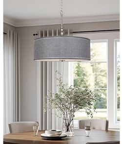 Kira Home Adelade 23" Modern 3-Light Drum Pendant Chandelier, Gray Fabric Shade, Tempered Glass Diffuser, Adjustable Height, Brushed Nickel (Y016)$45Rialto, CA