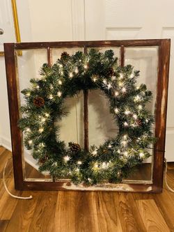 32”x31” Vintage Distressed Newly Stained Window With Plug In Wreath (rare 4 Pane Window)$60Gastonia, NC