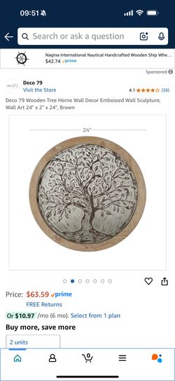 Deco 79 Wooden Tree Home Wall Decor Embossed Wall Sculpture, Wall Art 24" x 2" x 24", Brown$25Brooklyn, NY