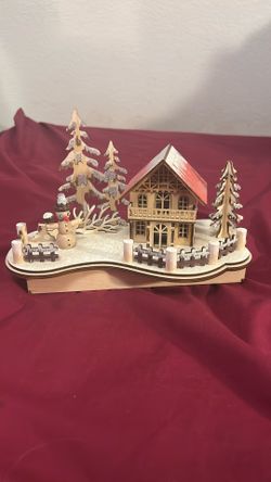 German Christmas Snowman Scene Laser Cut Wooden Lighted 9" long$30Lake Elsinore, CA