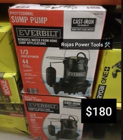 EVERBIT PROFESSIONAL SUMP PUMP 1/3 HORSEPOWER 44 GALLONS PER MINUTE$180Indio, CA