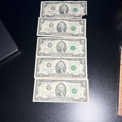1995 $2 Notes (5 Total) $20Wilmington, OH