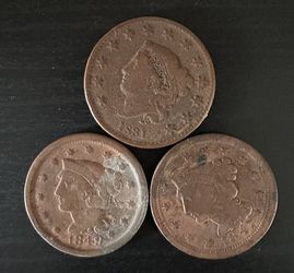3 Coins Coronet Head Large Cents 1831, 1847, 1849$65Stockrtwn Township, PA