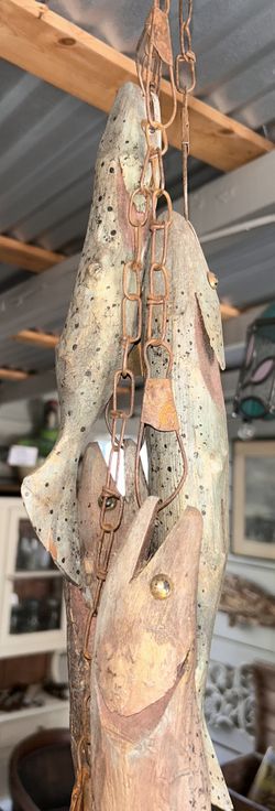 Vintage Handmade Carved Wooden Trout On Stringer $200Wimberley, TX