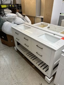 🚨60” WHITE BATHROOM VANITY W/QUARTZ TOP & BLACK HANDLES🚨$1,050Phoenix, AZ