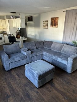 Corduroy Sectional. 4-Piece Sectional Set W/ Ottoman Reversible Loveseat + Reversible Loveseat W/USB Console & Cup Holders + Corner Wedge + Cocktail$650Fontana, CA