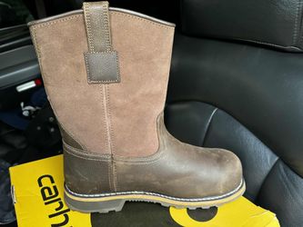 This is a men's Carhartt Traditional Welt Waterproof 10" Nano Toe Wellington work boot, model CMP1453, in brown oiled leather and suede. $100Huntington Park, CA