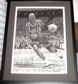 Michael Jordan autographed Chicago Bulls 16x20 litho print framed JSA$2,600San Diego, CA