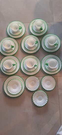 Vintage Fenton Emerald Crest Milk Glass Ruffled Edges $350Halndle Bch, FL