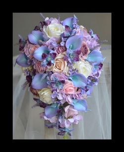 Light Purple Blue Pink Wedding Bouquet, Real Touch Fake Flowers, hydrangeas, Orchids, Lavender Mauve Roses$200Grand Terrace, CA