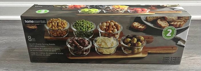 Home Essentials set of 2 Acacia Serving Boards with 6 Glass Bowls$10Lombard, IL