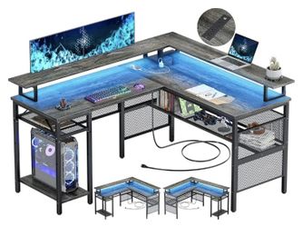 Modern L-shaped gaming desk. LED lights, shelving.$150Deland, FL