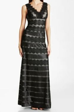 $20_JS Collections Satin Lace Mesh Gown Dress Sz 6 Black$20Artesia, CA