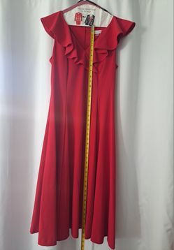 $20_CALVIN KLEIN RED DRESS SIZE 6 NWT CASCADING COLLAR$20Downey, CA