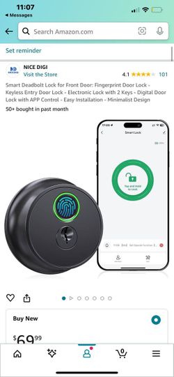 Smart Deadbolt Lock for Front Door: Fingerprint Door Lock - Keyless Entry Door Lock - Electronic Lock with 2 Keys - Digital Door Lock with APP Control$150Queens, NY