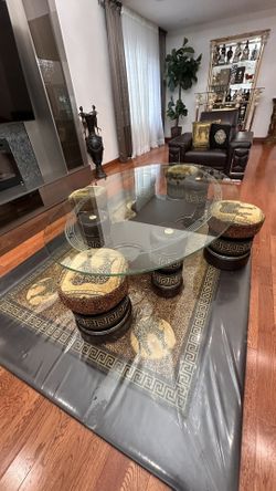 Luxury Designer Coffee Table Set — Glass Top & Matching Stools, Flat Rug$1,200Los Angeles, CA