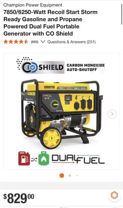 Champion Power Equipment 7850/6250-Watt Recoil Start Gasoline and Propane Powered Dual Fuel Portable$665El Monte, CA