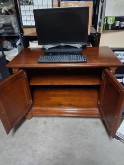 Cabinet also good tv stand computer compartment s solid like red wood good shape$30Las Vegas, NV