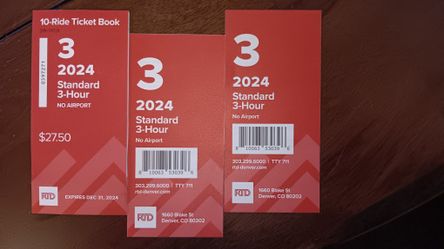 RTD 10-Ride Ticket Book ×3$50Denver, CO