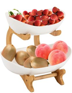 2 Tier Fruit Basket for Kitchen Counter, Small Ceramic Serving Bowls with Bamboo Stand Fruit Holder, 5.7''x8.5''x7.4'' Vegetable Storage Decorative St$15Riverside, CA