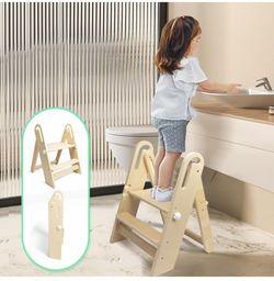 WOOD Step Stool Foldable for Toddlers, Adjustable Kids Step Stool for Bathroom Sink Toilet Potty Training Stool with Handles Child Kitchen Counter St$25Riverside, CA