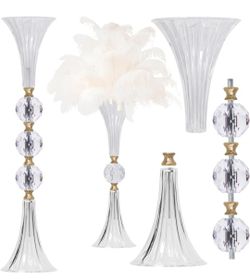 Crystal Acrylic Trumpet Vase for Wedding Centerpieces & Home Decor - 24.8" Clear Flower Stand with Ribbed Texture, Gold Accents, Table/Floor Vase for $50Riverside, CA