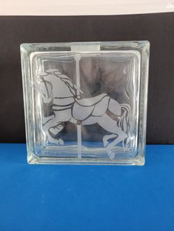 Vintage Clear Glass Block Coin Bank w Carousel Horse $10Forest Hill, MD