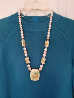 Vintage Chunky Beaded Necklace Salmon/Cream Floral Motif 29"$10Forest Hill, MD