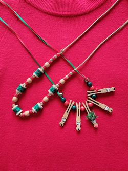 2 Vintage Handmade Holiday Necklaces Clothespin Reindeer and Chunky Wooden Beads$10Forest Hill, MD
