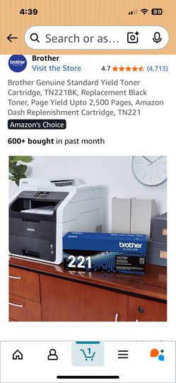 Brand New - Unopened! Brother Genuine Standard Yield Toner Cartridge, TN221BK, Replacement Black Toner, Page Yield Upto 2,500 Pages, Amazon Dash Reple$44Phoenix, AZ