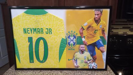 NEYMAR JR OF THE BRASILIAN SOCCER TEAM,BRANDED, AUTHENTIC FRAMED JERSEY.$45Riverview, FL