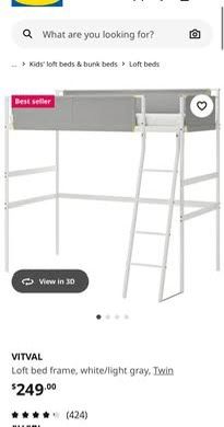 IKEA Vitval Loft Bed Used For Half A Year$130San Diego, CA