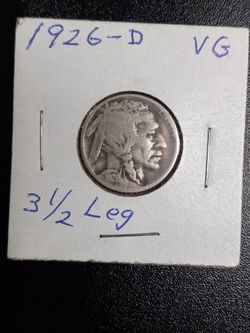 1926-D 3 1/2 Legged Buffalo Nickel $250Oklahoma City, OK