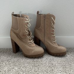 Tan Lace-Up Rhinestone Chunky Heel Ankle Boots Women’s Size 8$15Dallas, TX