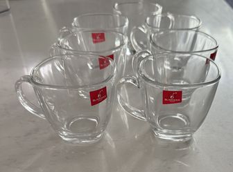Cups. - LUMINARC 10oz Clear Glass Mugs Set of 4 Holiday Winter Snow$20Fullerton, CA