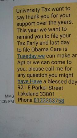 University Tax. We do Obama care,tax,immigration, insurance$0Lakeland, FL