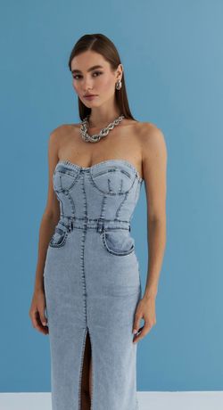 Strapless Denim Dress with Front Slit – Fitted Jean Dress $45Oakland, FL