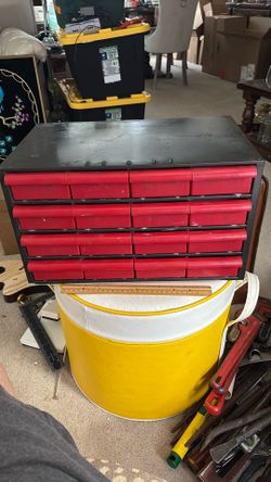 16 Drawer Small Parts Storage Organizer Black Metal Red Plastic$33Orland Park, IL