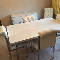 White Dining Room Table With 6 Chairs, 2 11” Centers, And Buffet MCM$350Willowbrook, IL
