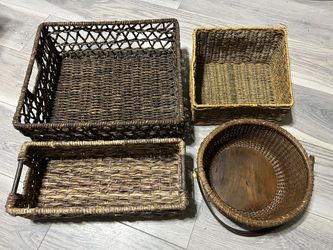 Lot of 4 Woven Rattan Baskets Storage Organizer Boho Farmhouse Decor$20Sacramento, CA