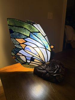Stained Glass Butterfly Lamp β Tiffany Style w/ Rose Base πΏ Warm Ambient Glow $80Weaverville, NC