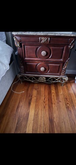Red Wood Night Stand With faux Marble Top$90Queens, NY